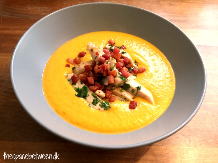 Jeg har sagt det før, men siger det gerne igen! Jeg er en suppe-pige. Jeg elsker suppe. Her i de kolde måneder kunne jeg sagtens spise det hver dag. Jeg tilføjer dog tit en slags kød, for at få lidt mere mæthedsfornemmelse. Denne gang er det kylling og bacon, men det kunne lige så vel være rejer, kødboller eller lignende. Man kan selvfølgelig også bare nøjes med suppe:-)